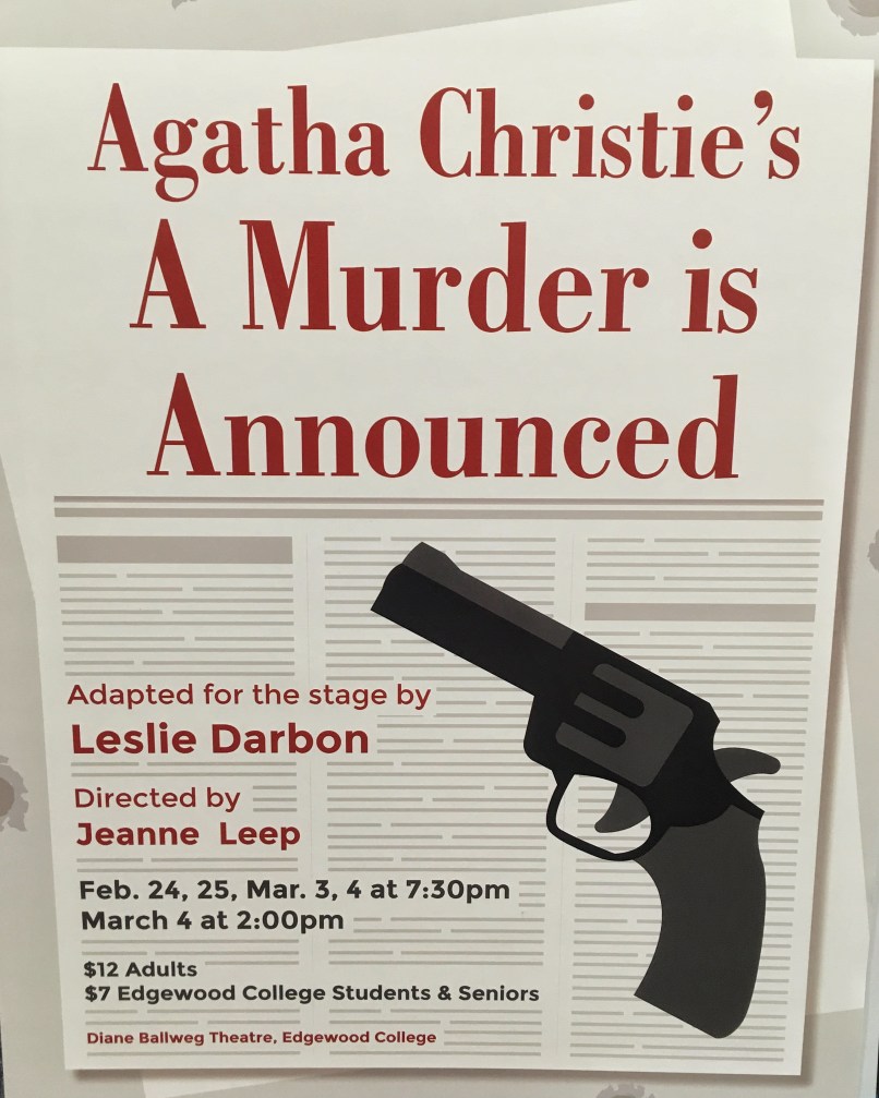 Edgewood’s Theater Department is putting on a production of Agatha Christie’s, “A Murder is Announced,” for the spring semester.