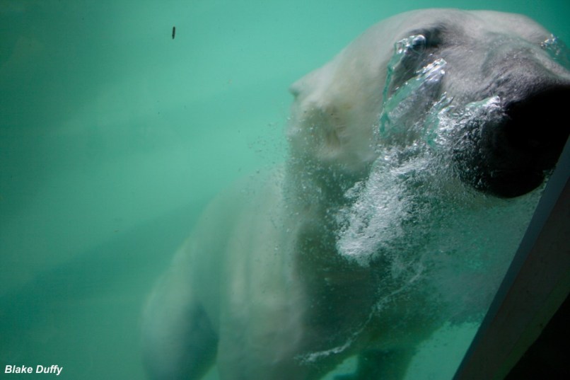 Patrons of all ages get the chance to be up close and personal with the three-year-old twin polar bears, Sakari and Suka, both on land and down below as they dive through the water.