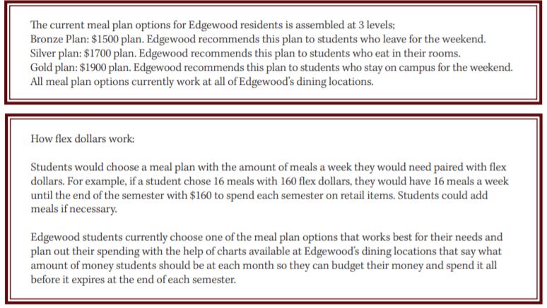 Edgewood is considering three-to-four meal plan options. These plans would be All-You-Care-To-Eat plans that other colleges across the country are offering, including Beloit College and Cornell University, which is located in Ithaca, N.Y. These proposed plans would use flex dollars, similar to Beloit’s meal plan options.