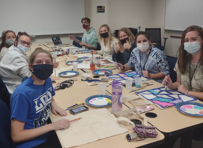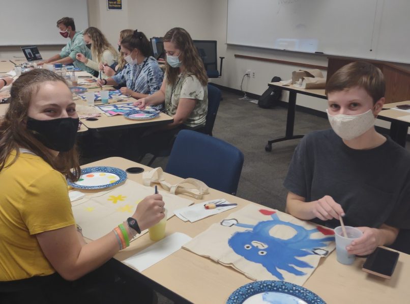 The Aug. 30 meeting in Predolin 115B brought in around 44 students to paint tote bags together. Kluz said she was excited to plan a fun, and environmentally friendly first meeting.