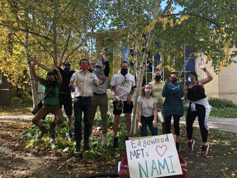 The turnout was slightly larger than expected. However, social distancing was practiced, and masks were worn by all participants and observers. Nine MFT students and one faculty member represented Edgewood College, of the 16 individuals who participated in the walk.