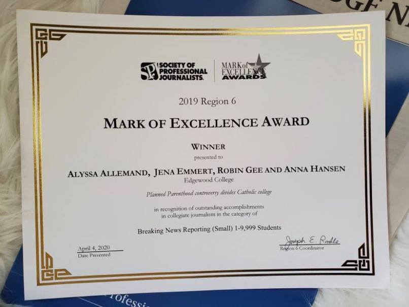 On the Edge News is proud to accept both the Mark of Excellence Region 6 award as well as the national Mark of Excellence award from the Society of Professional Journalists for Best Breaking News Reporting.