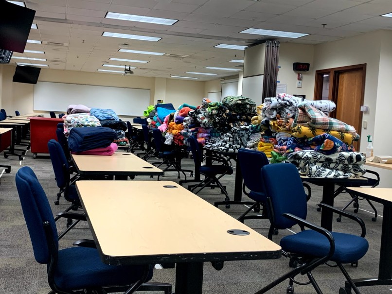 On the evening of Jan. 20 a group of 10-15 students worked together at a Blanket Making event in Predolin. Students could choose different fabrics for their own blankets.