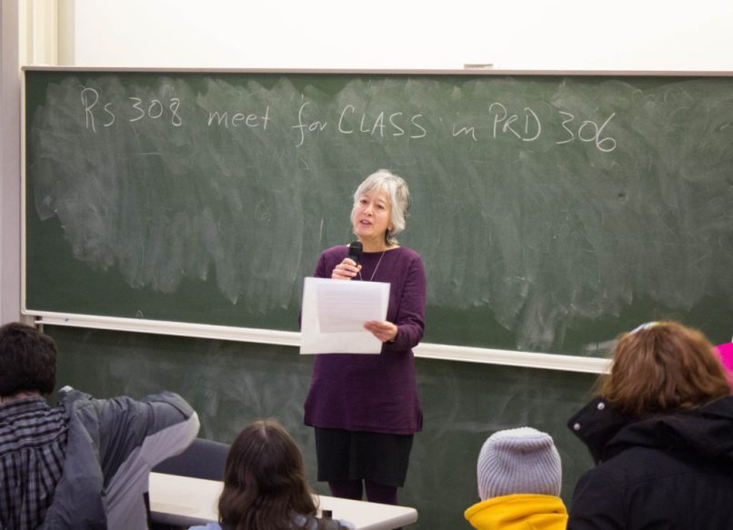 Dean of Arts and Sciences Melanie Herzog read aloud a letter in support of students from faculty and staff. Photo by Jena Emmert.