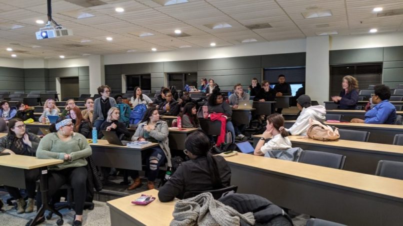 Students gather with faculty and staff at a forum on Friday Dec. 6. Photo by Jena Emmert.