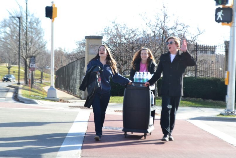 Students bring water and food to protestors on Monroe Street. Photo by Robin Gee.